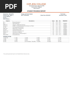 Jan Kieneth Agbon Tangog Report Card 20181109095657 Pdf Behavior Modification Learning